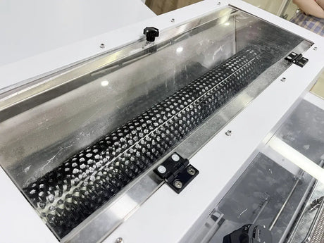 Un shaker DTF est une poudreuse automatique utilisée après l’impression du film DTF.
