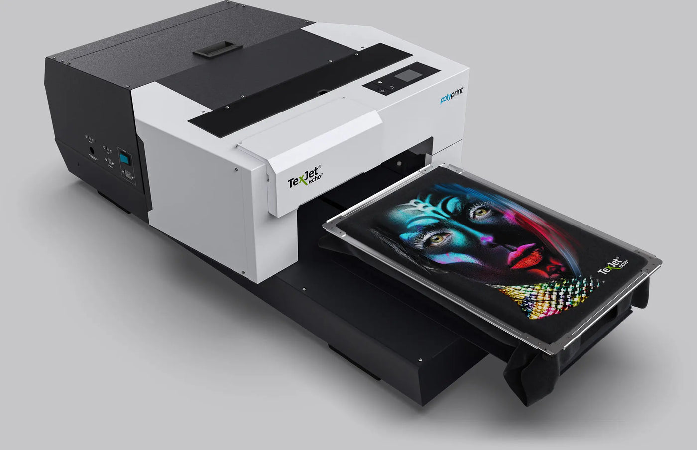 La TexJet Echo² est la solution complète pour l’impression directe sur tee-shirts et vêtements en qualité photo sur de nombreux textiles clairs ou fonçés.