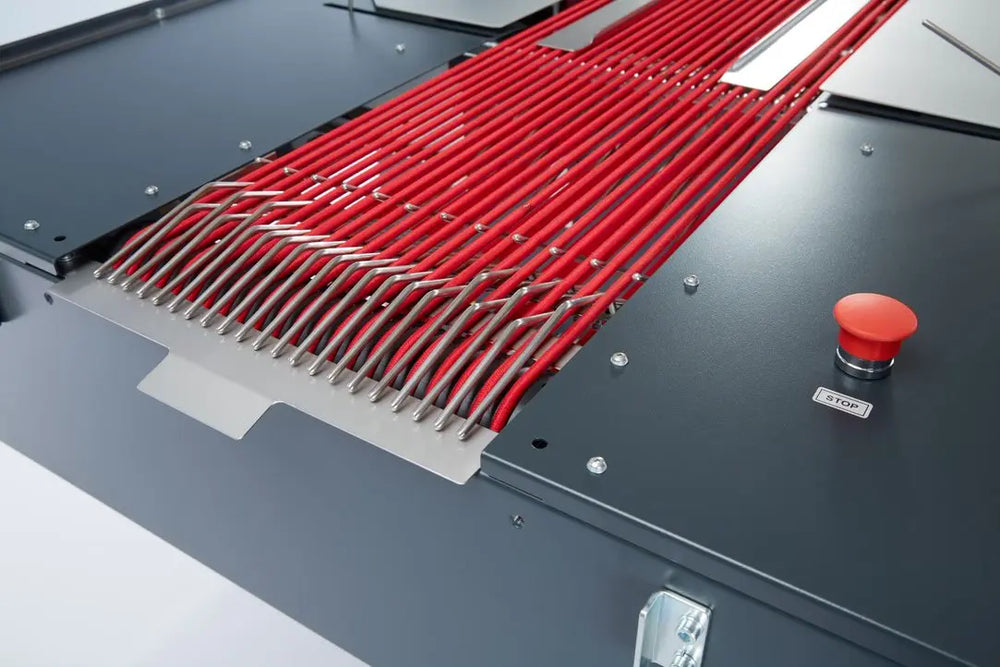 La machine ne nécessite qu'un seul opérateur et est conçue pour plier les pulls, les pantalons, les t-shirts, les sweatshirts, les polos, les maillots de corps, etc. Les réglages peuvent être facilement modifiés en fonction des tailles de vêtements spécifiées, de sorte que la machine peut traiter des textiles de types et de dimensions différents, ainsi qu'une grande variété de styles de pliage. Sa cadence habituelle est de 14 vêtements par minute (mesurée dans nos installations), ce qui peut être réalisé à l'aide des 5 programmes de base. La vitesse de l'opérateur est un facteur important qui influe sur le rendement de la machine, de même que le programme sélectionné sur l'interface de la machine et le type de vêtement. La STP1000 est une machine robuste qui nécessite un minimum d'entretien. La STP1000 est proposée comme unité autonome ou en combinaison avec d'autres machines, dans le cadre d'une station de pliage et d'emballage Thermotron.