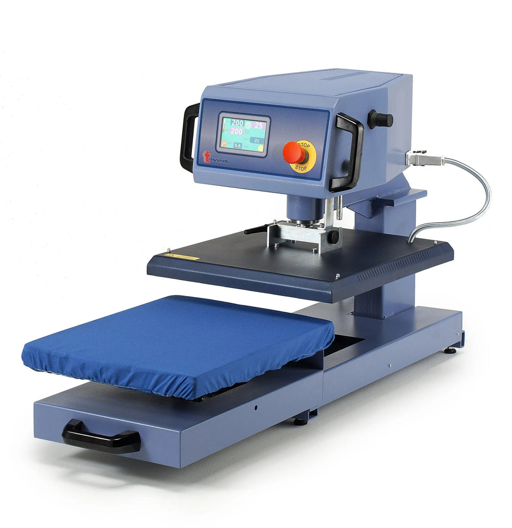 TS 2P est une presse de transfert à chaud 50 x 40cm pneumatique à tiroir. C'est une presse semi-automatique avec une forte pression.